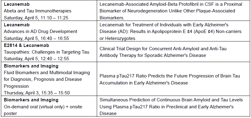 - Selkoe, D. Does the Current Evidence for Lecanemab Mechanism Support a Rationale for Continued Lecanemab Dosing? Presented at Alzheimer’s Association International Conference, 2024.